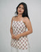 Add a pop of playfulness to your everyday look with this mint green sleeveless top featuring a small, cute pink floral print. The straight neckline and spaghetti straps give it a modern touch, while the back zip closure ensures a neat fit. A side slit adds subtle movement and ease, making this piece both functional and fun for warm-weather days.